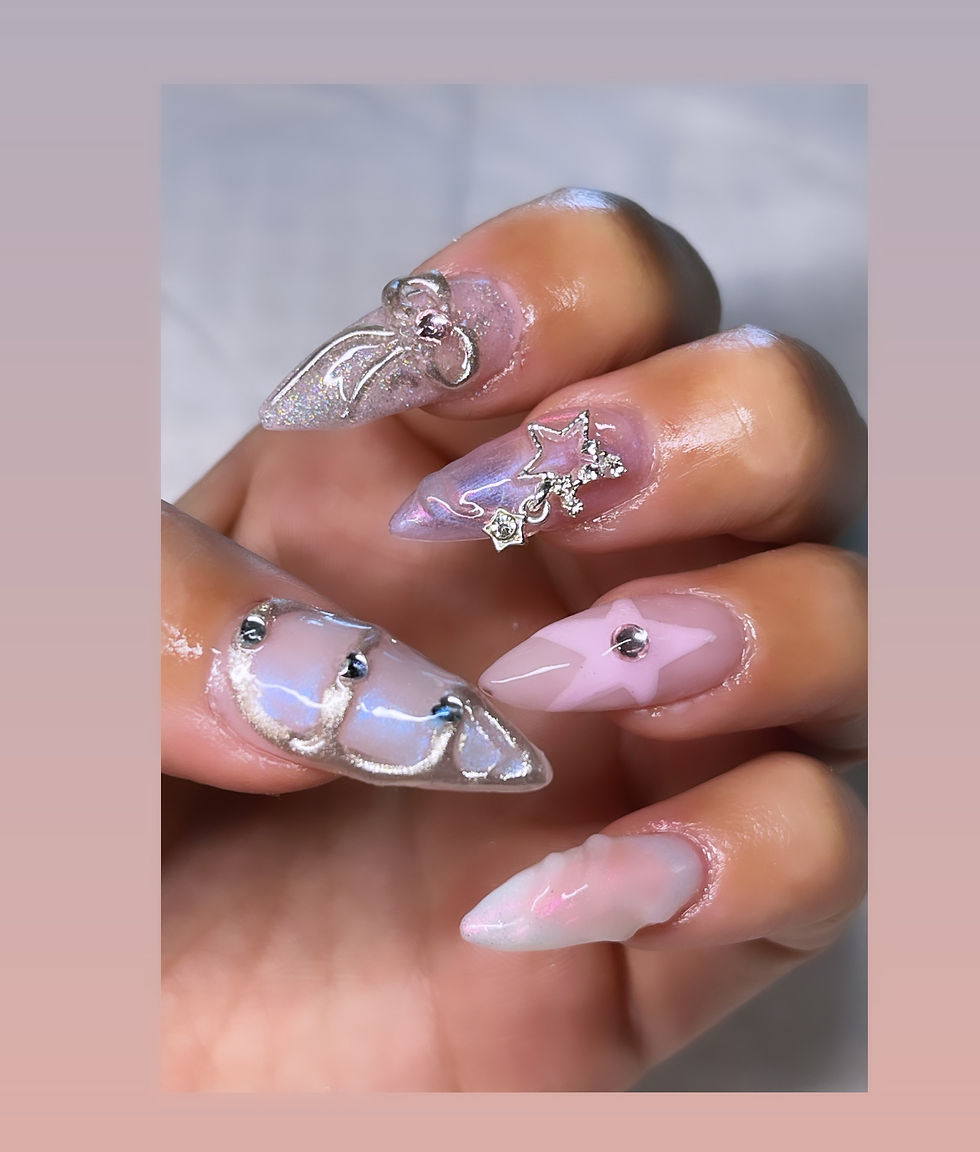 Plongez dans l'extravagance avec nos Press On Nails Excentriques. Chaque design est une oeuvre d'art en 3D, sculptée et peinte à la main, ornée de bijoux étincelants et de strass luxuriants. Exprimez votre individualité avec des ongles qui repoussent les limites du style, telle une déclaration audacieuse qui captive le regard.